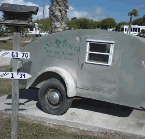 Day 1 (June 11, 2008). We got off to a late start today. Wanted to be on the road by 4:00, but it was about 5:15 before we got started. With gas prices near $4.00, I decided to take it slow all the way down to Corpus, keeping the motor home at about 65 mph. We stopped at a rest area for dinner and heated up some leftovers we'd brought from home. We had decided to take an alternate route to the campground to avoid going over the bridge out of Corpus, and Google Maps had given us directions through the little town of Odem, Texas (pop 2400). The sun was already going down by the time we got to Odem and there were a lot of narrow roads we had to traverse. Some of the roads were so rough I thought it was going to rattle the RV apart. At one point we hit a one lane road with a traffic light on each end. We sat there for a long time waiting for the light to change, and couldn't see the other end of the road to know if it was safe. On the way home, we decided to go over the bridge. We finally made it to the campground just before 9:00 The Sea Breeze RV park in Portland, Texas (www.seabreezerv.com) was really dark when we got in and I had some trouble finding our space. Forgot to bring a flashlight (need to add that to my checklist) so it was a